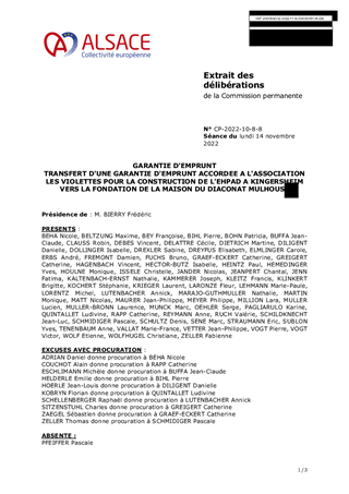 GARANTIE D'EMPRUNT TRANSFERT D'UNE GARANTIE D'EMPRUNT ACCORDEE A L'ASSOCIATION LES VIOLETTES POUR LA CONSTRUCTION DE L'EHPAD A KINGERSHEIM VERS LA FONDATION DE LA MAISON DU DIACONAT MULHOUSE