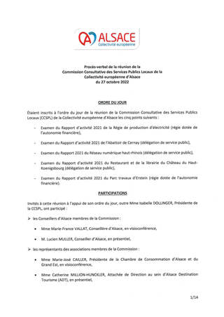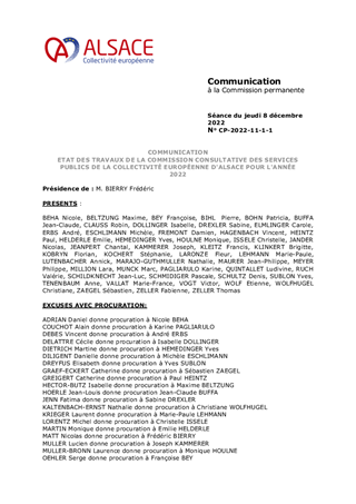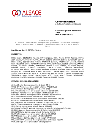 COMMUNICATION ETAT DES TRAVAUX DE LA COMMISSION CONSULTATIVE DES SERVICES PUBLICS DE LA COLLECTIVITÉ EUROPÉENNE D'ALSACE POUR L'ANNÉE 2022