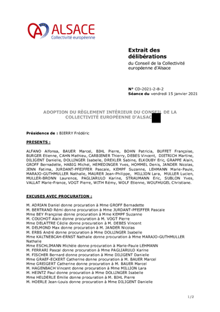 ADOPTION DU RÈGLEMENT INTÉRIEUR DU CONSEIL DE LA COLLECTIVITÉ EUROPÉENNE D'ALSACE