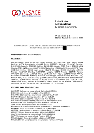 FINANCEMENT 2022 DES ETABLISSEMENTS D'HEBERGEMENT POUR PERSONNES AGEES DEPENDANTES