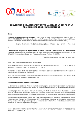 CONVENTION DE PARTENARIAT ENTRE L'ARSEA ET LA CEA POUR LA PRISE EN CHARGE DE JEUNES MAJEURS