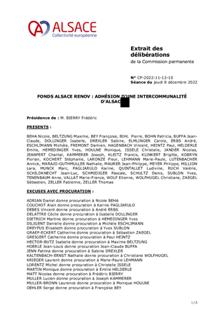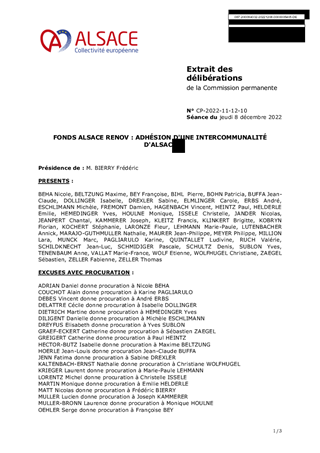 FONDS ALSACE RENOV : ADHÉSION D'UNE INTERCOMMUNALITÉ D'ALSACE