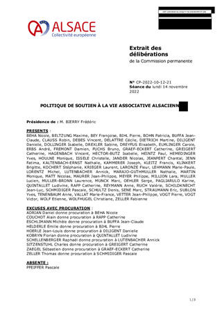 POLITIQUE DE SOUTIEN À LA VIE ASSOCIATIVE ALSACIENNE