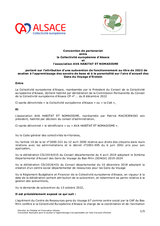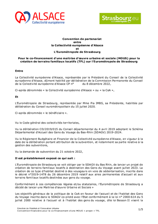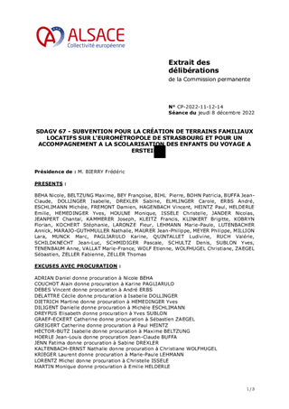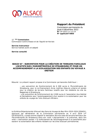 SDAGV 67 - SUBVENTION POUR LA CRÉATION DE TERRAINS FAMILIAUX LOCATIFS SUR L'EUROMÉTROPOLE DE STRASBOURG ET POUR UN ACCOMPAGNEMENT A LA SCOLARISATION DES ENFANTS DU VOYAGE A ERSTEIN