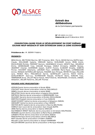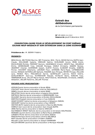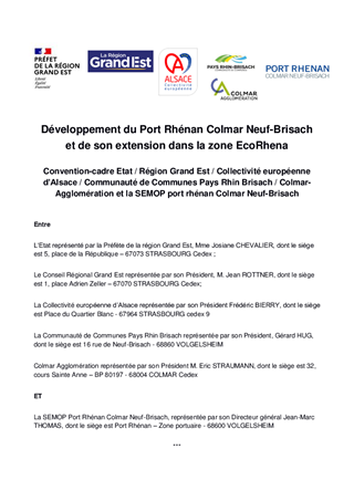 CONVENTION-CADRE POUR LE DÉVELOPPEMENT DU PORT RHÉNAN COLMAR NEUF-BRISACH ET SON EXTENSION DANS LA ZONE ECORHENA
