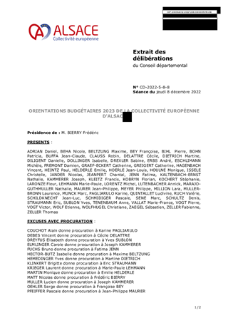 ORIENTATIONS BUDGÉTAIRES 2023 DE LA COLLECTIVITÉ EUROPÉENNE D'ALSACE