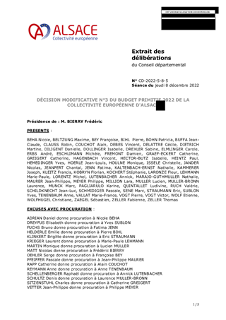 DÉCISION MODIFICATIVE N°3 DU BUDGET PRIMITIF 2022 DE LA COLLECTIVITÉ EUROPÉENNE D'ALSACE