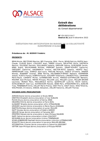 EXÉCUTION PAR ANTICIPATION DU BUDGET DE LA COLLECTIVITÉ EUROPÉENNE D'ALSACE
