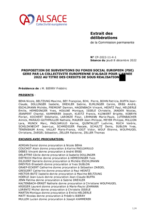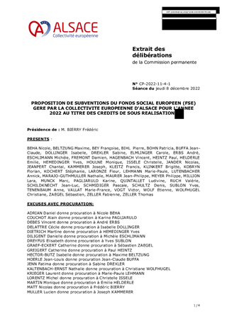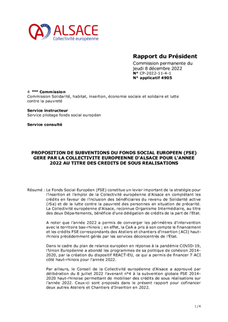 PROPOSITION DE SUBVENTIONS DU FONDS SOCIAL EUROPEEN (FSE) GERE PAR LA COLLECTIVITE EUROPEENNE D'ALSACE POUR L'ANNEE 2022 AU TITRE DES CREDITS DE SOUS REALISATIONS