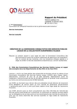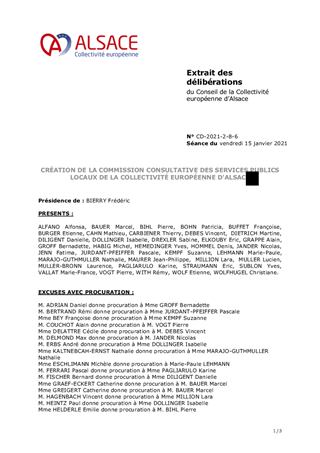 CRÉATION DE LA COMMISSION CONSULTATIVE DES SERVICES PUBLICS LOCAUX DE LA COLLECTIVITÉ EUROPÉENNE D'ALSACE