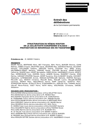 STRUCTURATION DU RÉSEAU ROUTIER DE LA COLLECTIVITÉ EUROPÉENNE D'ALSACE - PROPOSITION DE RENOMMAGE DES RN TRANSFÉRÉES
