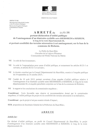 RD 66 - AMÉNAGEMENT DE L'ITINÉRAIRE CYCLABLE ENTRE RIXHEIM ET RIEDISHEIM DANS LE CADRE DE L'EUROVÉLOROUTE N° 6 - NANTES - BUDAPEST.