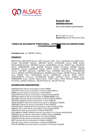 FONDS DE SOLIDARITE TERRITORIAL - ATTRIBUTION DE SUBVENTIONS D'INVESTISSEMENT