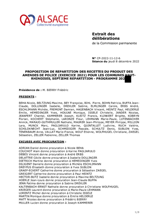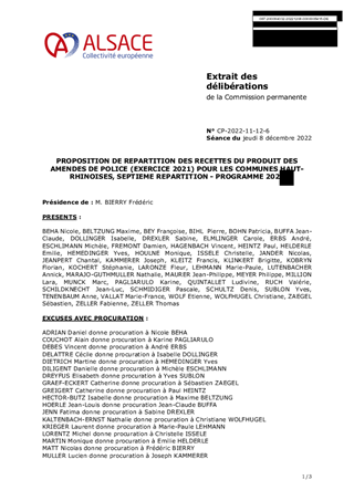 PROPOSITION DE REPARTITION DES RECETTES DU PRODUIT DES AMENDES DE POLICE (EXERCICE 2021) POUR LES COMMUNES HAUT-RHINOISES, SEPTIEME REPARTITION - PROGRAMME 2022