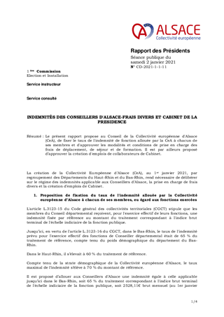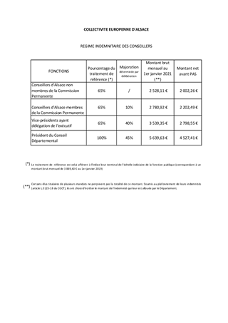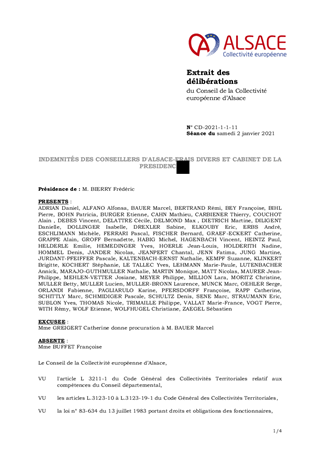 INDEMNITÉS DES CONSEILLERS D'ALSACE-FRAIS DIVERS ET CABINET DE LA PRESIDENCE