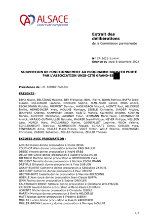 SUBVENTION DE FONCTIONNEMENT AU PROGRAMME BOOSTER PORTÉ PAR L'ASSOCIATION UNIS-CITÉ GRAND-EST