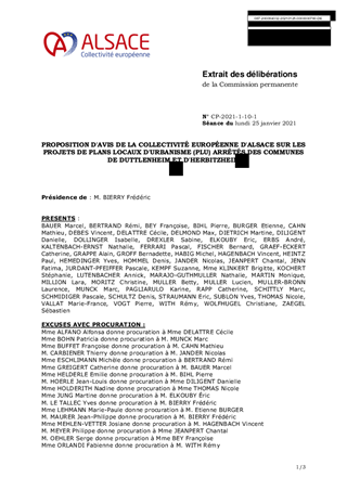PROPOSITION D'AVIS DE LA COLLECTIVITÉ EUROPÉENNE D'ALSACE SUR LES PROJETS DE PLANS LOCAUX D'URBANISME (PLU) ARRÊTÉS DES COMMUNES DE DUTTLENHEIM ET D'HERBITZHEIM