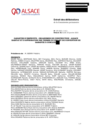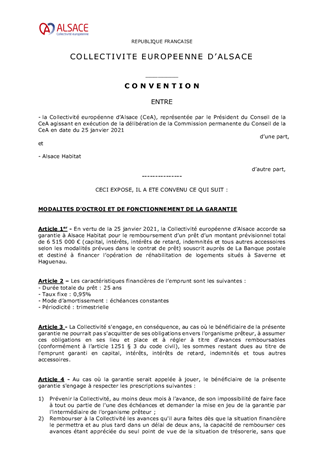GARANTIES D'EMPRUNTS - ORGANISMES DE CONSTRUCTION - ALSACE HABITAT ET D'APPROBATION DES TERMES DU PROJET DE CONVENTION DE GARANTIE À CONCLURE