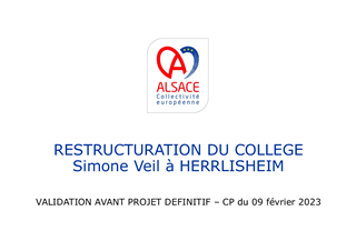COLLÈGE SIMONE VEIL DE HERRLISHEIM - OPÉRATION D'EXTENSION ET DE RESTRUCTURATION-VALIDATION DE L'AVANT-PROJET DÉFINIT