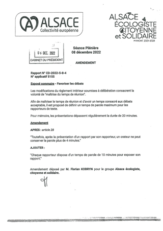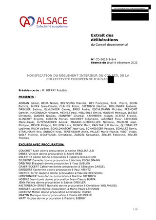 MODIFICATION DU RÈGLEMENT INTÉRIEUR DU CONSEIL DE LA COLLECTIVITÉ EUROPÉENNE D'ALSACE
