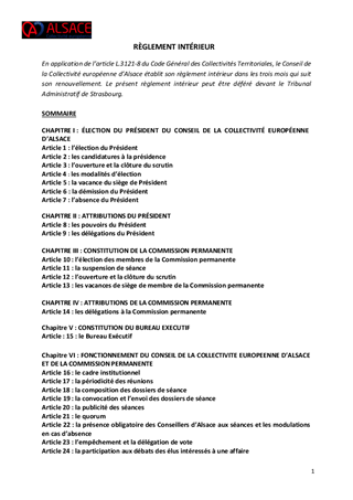 Le présent rapport a pour objet de modifier le règlement intérieur du Conseil de la Collectivité européenne d'Alsace, qui est soumis à l'approbation de notre Assemblée.