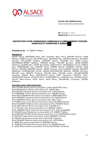 INSTITUTION D'UNE COMMISSION COMMUNALE D'AMÉNAGEMENT FONCIER AGRICOLE ET FORESTIER À BISSERT