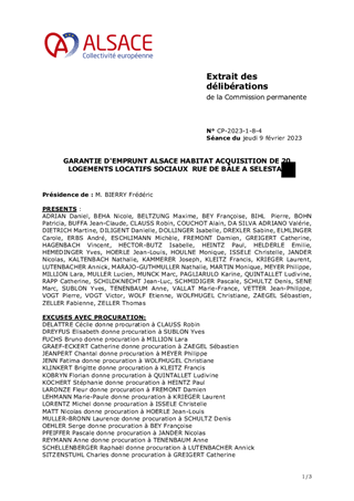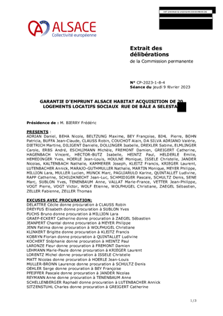GARANTIE D'EMPRUNT ALSACE HABITAT ACQUISITION DE 20 LOGEMENTS LOCATIFS SOCIAUXRUE DE BÂLE A SELESTAT