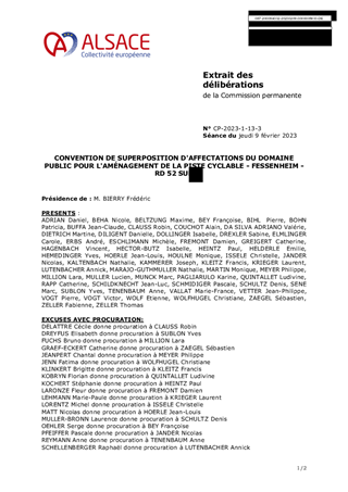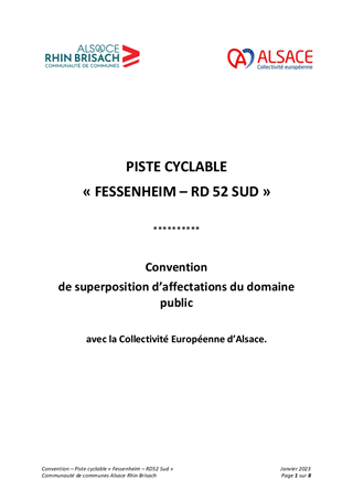 CONVENTION DE SUPERPOSITION D'AFFECTATIONS DU DOMAINE PUBLIC POUR L'AMÉNAGEMENT DE LA PISTE CYCLABLE - FESSENHEIM - RD 52 SUD
