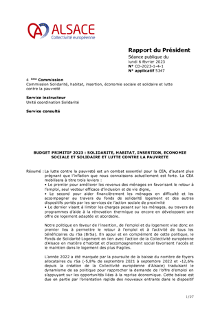 BUDGET PRIMITIF 2023 : SOLIDARITE, HABITAT, INSERTION, ECONOMIE SOCIALE ET SOLIDAIRE ET LUTTE CONTRE LA PAUVRETE