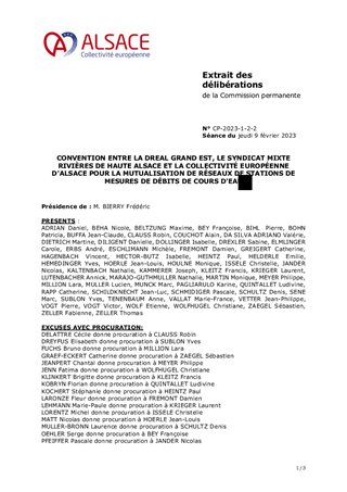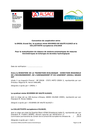 CONVENTION ENTRE LA DREAL GRAND EST, LE SYNDICAT MIXTE RIVIÈRES DE HAUTE ALSACE ET LA COLLECTIVITÉ EUROPÉENNE D'ALSACE POUR LA MUTUALISATION DE RÉSEAUX DE STATIONS DE MESURES DE DÉBITS DE COURS D'EAU