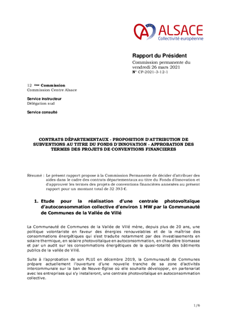 Le présent rapport propose à la Commission Permanente de décider d’attribuer des aides dans le cadre des contrats départementaux au titre du Fonds d'Innovation et d'approuver les termes des projets de conventions financières annexées au présent rapport pour un montant total de 32 393 €.