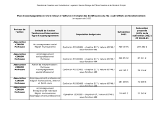 PLAN D'ACCOMPAGNEMENT VERS LE RETOUR À L'ACTIVITÉ ET L'EMPLOI DES BÉNÉFICIAIRES DU RSA : SUBVENTIONS DE FONCTIONNEMENT 2023
