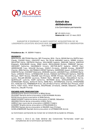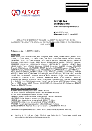 GARANTIE D'EMPRUNT ALSACE HABITAT ACQUISITION DE 30 LOGEMENTS LOCATIFS SOCIAUX RUE DES PAQUERETTES A OBERHOFFEN SUR MODER