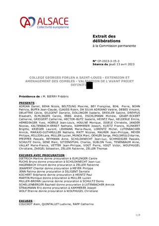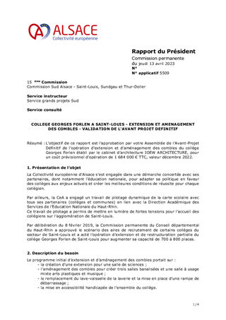 COLLEGE GEORGES FORLEN A SAINT-LOUIS - EXTENSION ET AMENAGEMENT DES COMBLES - VALIDATION DE L'AVANT PROJET DEFINITIF