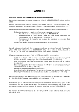 L’objectif de ce rapport est l’approbation par votre Assemblée de l’Avant-Projet Définitif de l’opération d’extension et d’aménagement des combles du collège Georges Forlen établi par le cabinet d’architecture IOEW ARCHITECTURE, pour un coût prévisionnel d'opération de 1 684 000 € TTC, valeur décembre 2022.
