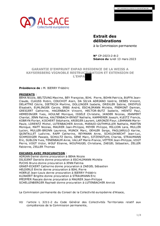 GARANTIE D'EMPRUNT EHPAD RESIDENCE DE LA WEISS A KAYSERSBERG VIGNOBLE RESTRUCTURATION ET EXTENSION DE L'EHPAD