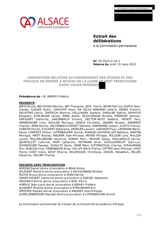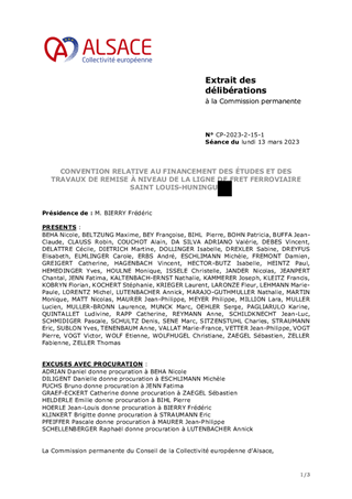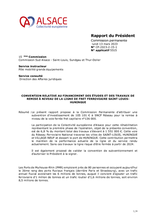CONVENTION RELATIVE AU FINANCEMENT DES ÉTUDES ET DES TRAVAUX DE REMISE À NIVEAU DE LA LIGNE DE FRET FERROVIAIRE SAINT LOUIS-HUNINGUE