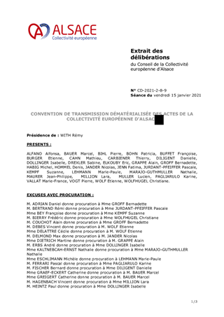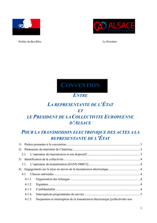CONVENTION DE TRANSMISSION DÉMATÉRIALISÉE DES ACTES DE LA COLLECTIVITÉ EUROPÉENNE D'ALSACE