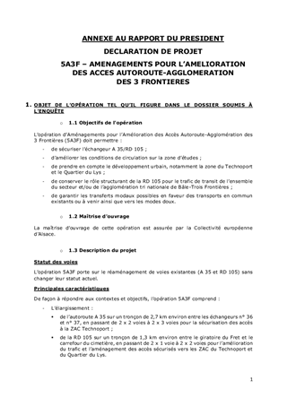 AMÉNAGEMENTS POUR L'AMÉLIORATION DES ACCÈS AUTOROUTES - AGGLOMÉRATION DES 3 FRONTIÈRES - DÉCLARATION DE PROJET