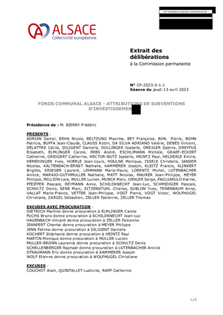 FONDS COMMUNAL ALSACE - ATTRIBUTIONS DE SUBVENTIONS D'INVESTISSEMENT