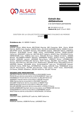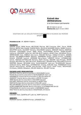 SOUTIEN DE LA COLLECTIVITE EUROPENNE D'ALSACE AU MONDE SPORTIF