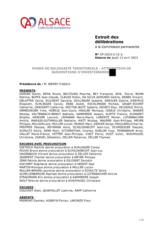 FONDS DE SOLIDARITE TERRITORIALE - ATTRIBUTION DE SUBVENTIONS D'INVESTISSEMENT