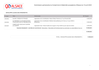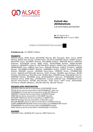 Le présent rapport a pour objet d’approuver l’attribution des subventions de fonctionnement proposées au titre du Fonds d’Intervention Alsacien, selon le détail joint en annexe.