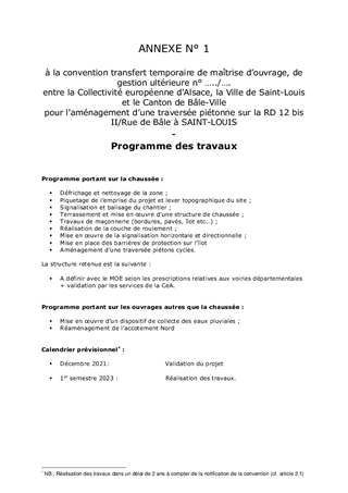 TRAVERSÉE PIÉTONNE ET CYCLABLE SUR LA RD 12 BIS II A SAINT-LOUIS - CONVENTION