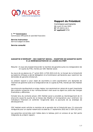Il vous est proposé d’accorder le maintien de garantie suite à la renégociation de 21 Lignes du Prêt, menée par CDC Habitat social.