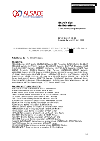 SUBVENTIONS D'INVESTISSEMENT 2023 AUX COLLÈGES PRIVÉS SOUS CONTRAT D'ASSOCIATION AVEC L'ETAT