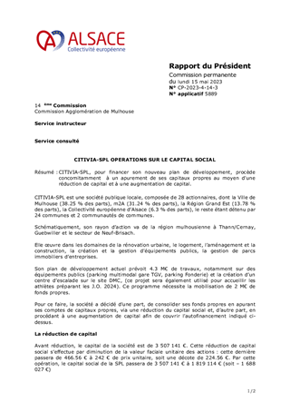 CITIVIA-SPL OPERATIONS SUR LE CAPITAL SOCIAL