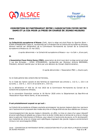 CONVENTION DE PARTENARIAT ENTRE L'ASSOCIATION FOYER NOTRE DAME ET LA CEA POUR LA PRISE EN CHARGE DE JEUNES MAJEURS