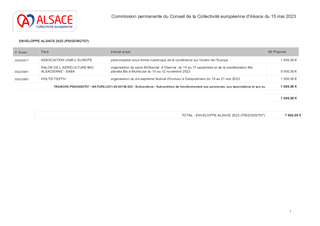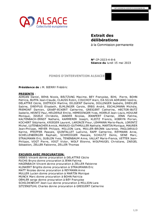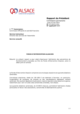 Le présent rapport a pour objet d’approuver l’attribution des subventions de fonctionnement proposées au titre du Fonds d’Intervention Alsacien, selon le détail joint en annexe.