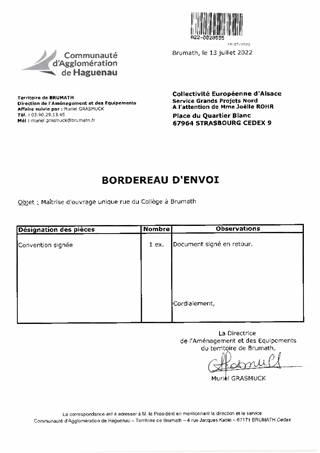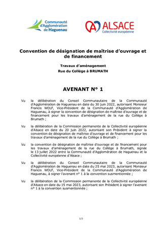 AVENANT À LA CONVENTION DE DÉLÉGATION DE MAÎTRISE D'OUVRAGE - VOIRIE À BRUMATH